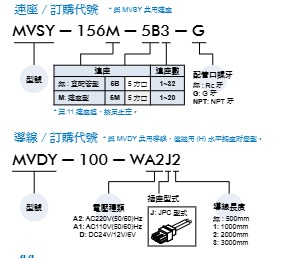 示例型号MVSY-156M-5B3-G,各段选型含义: