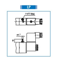 图纸包含俯视图、侧视图两个视角,展示了附件的安装结构:通过紧固件固定在电磁阀的线圈 / 阀体部位,俯视图标注了 “外付け座金(外置固定垫片)” 的安装位置,侧视图明确了核心安装尺寸,突出安装段的长度为 24.7mm,标注了安装孔的尺寸基准。