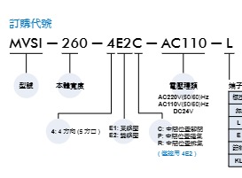 MVSI:固定的产品系列前缀(图中标注「型號」),代表 Mindman 符合 ISO-1 通用安装标准的电磁阀系列,是该产品的专属系列标识。